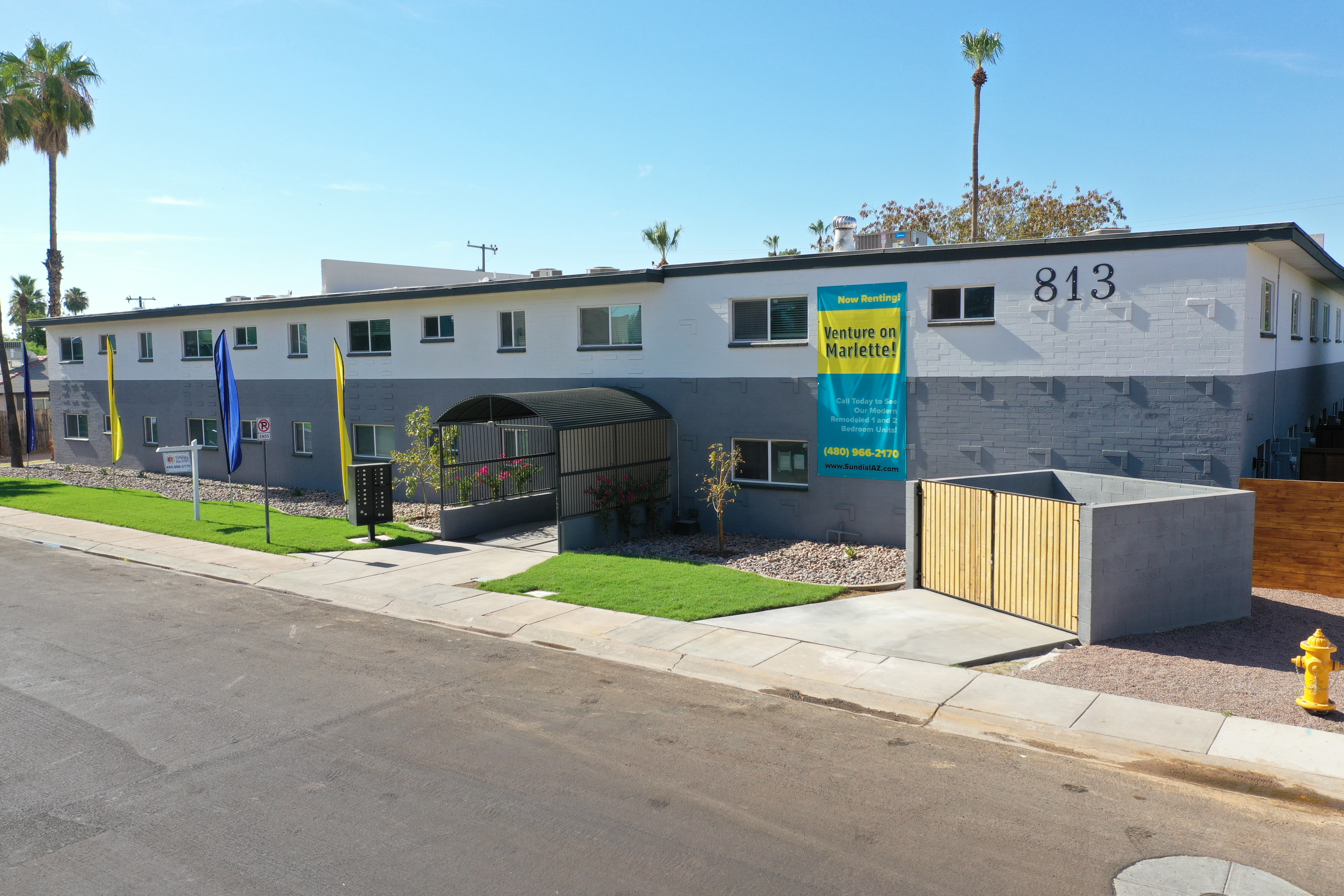 Venture on Marlette is a two-story, 14-unit apartment building with a 21st century updated color palette, colorful mural, modern touches, all working together to create a desirable urban community.